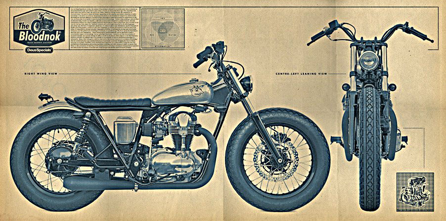 Кастом Bloodnok - новый проект Deus Ex Machina. Донор - харизматичный Kawasaki W650, примеривший на себе некоторые элементы стиля "скрэмблер".