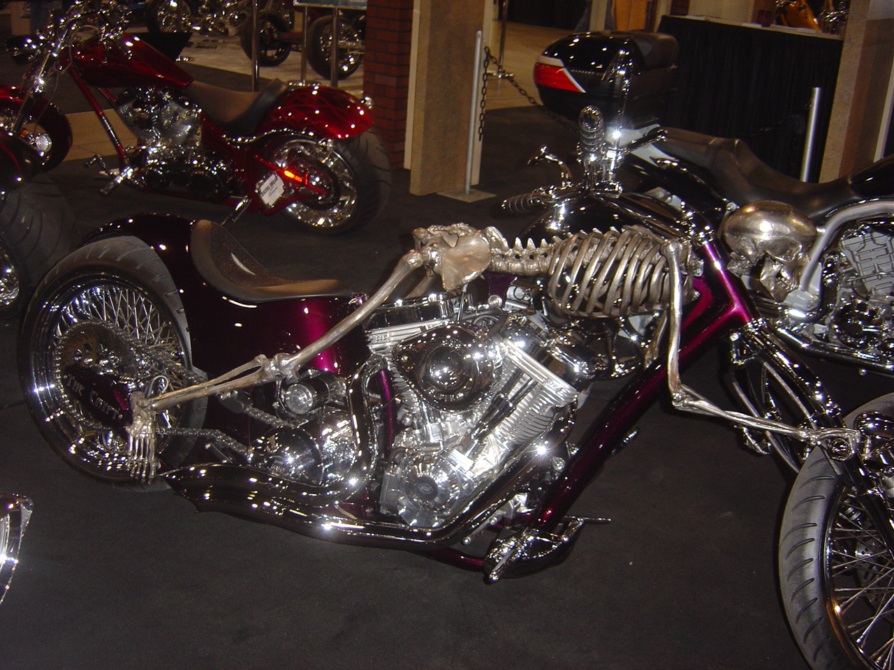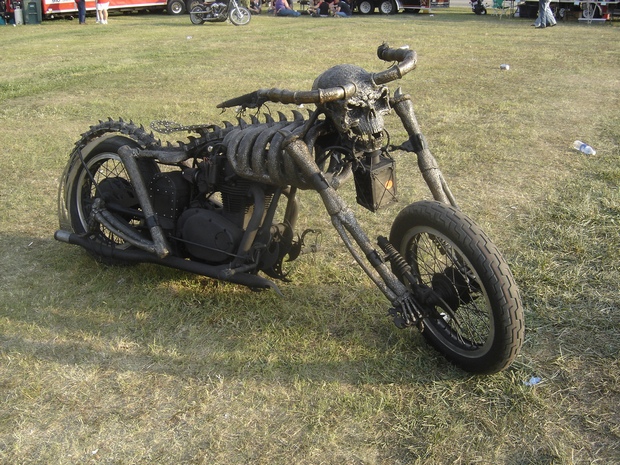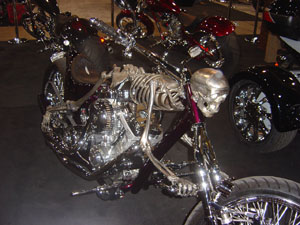 Для многих тема вампиров, вурдалаков и прочей "нечисти" из потустороннего мира продолжает оставаться самой интересной и интригующей, и это с завидной регулярностью находит свое отражение в целой ветви мотоциклетного кастомайзинга. Еще в 60-х годах несколько американских кастомайзеров "выдали на гора" очень похожие по экстерьеру мотоциклы с черепами и ребрами. В дальнейшем фанаты из Америки, Европы, Австралии и даже Индии неоднократно обращались к подобным образам "нечистой силы", создавая детали и даже некоторые агрегаты в виде черепов и костей. На прошедшей еще в декабре 2006 года немецкой выставке "Essen MotorShow" был показан очередной "экземпляр" из потустороннего мира, СКЕЛЕТ, или, на языке создателей, Skeleton. И мы, освещая ту выставку, пообещали рассказать о нем в отдельном материале, слишком уж оригинален и ярок этот кастом! Пусть и с опозданием, но мы выполняем это обещание!