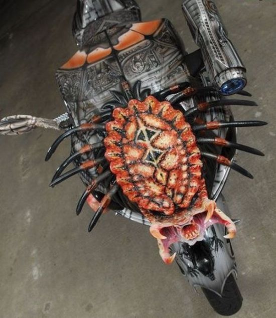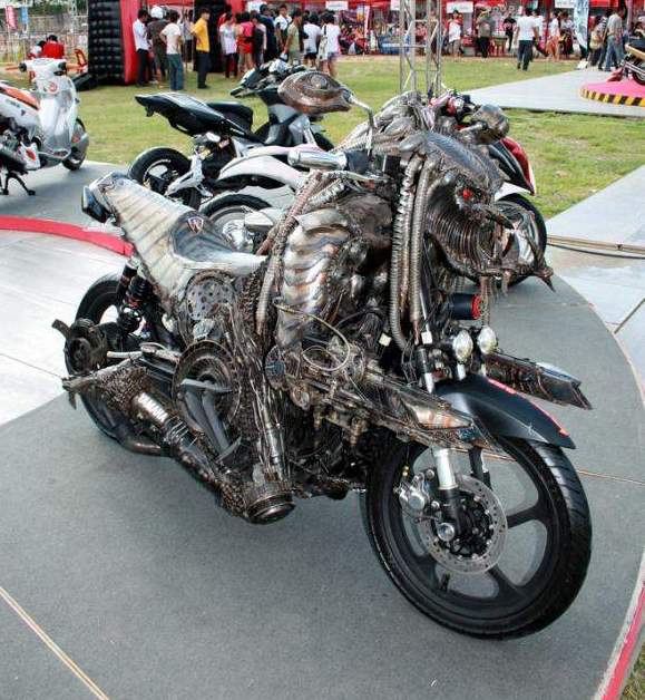 Вне всякого сомнения, байкер, «оседлавший» космического героя из фильма «Хищник» должен быть большим фанатом кинокартины, либо видеоигры по мотивам фильма. В результате вдохновения образом страшного Хищника, стоковый мотоцикл Yamaha превратился в удивительное существо.