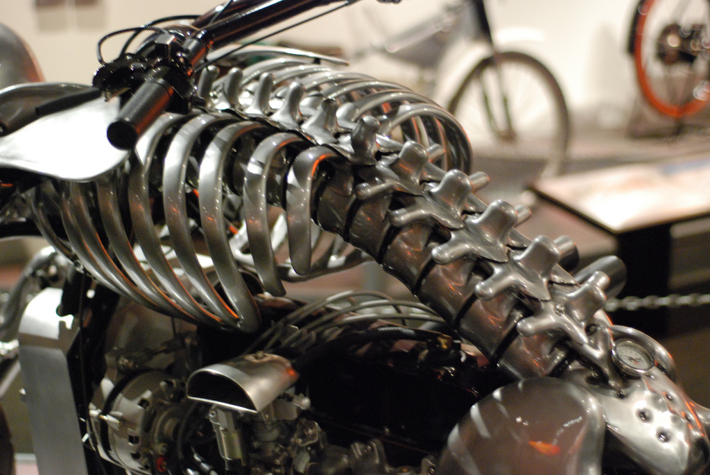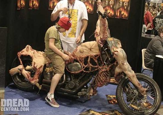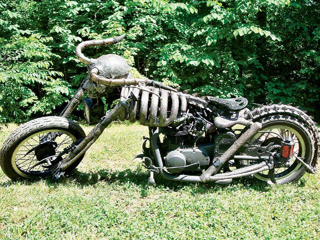 Этому аппарату уже два года, но, недавно, автор внес в конструкцию незначительные доработки, возможно, добавил недостающие кости для правдоподобности. Для создания этой «мото скульптуры» Билли использовал велосипедную раму, электродвигатель и... скелет коровы.