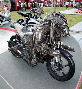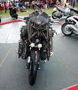 На улицах города часто встречаются железные кони с различными граффити на их «телах», привлекающие внимание своей необычностью и яркостью. Но на владельца этого мотоцикла, замеченного при проведении мотогонок в Тайланде, наверняка, оборачиваются все без исключения.