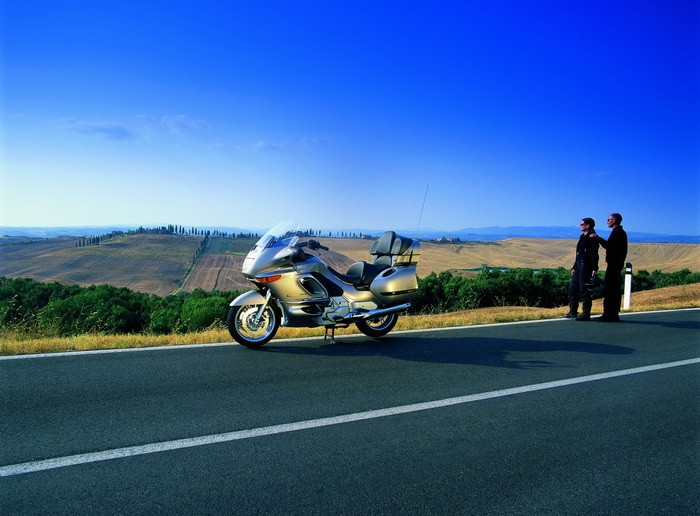 Туристическая версия небезызвестного спорттуриста K1200RS увидела свет в конце 2002 года. Конструкция силового агрегата и ходовой части практически не изменилась, но появились доработки, а также атрибуты и опции, которые могут соответствовать только машине уровня GT. Хочется сразу отметить, что на протяжении десятилетий конструкторам и дизайнерам BMW удается сохранять характерный стиль мотоциклов этой серии. Облик аппарата, солидный и стремительный одновременно, явно указывает на его предназначение. Путешествие с достоинством и комфортом, надежно и быстро: эти впечатления возникают уже при визуальном знакомстве.