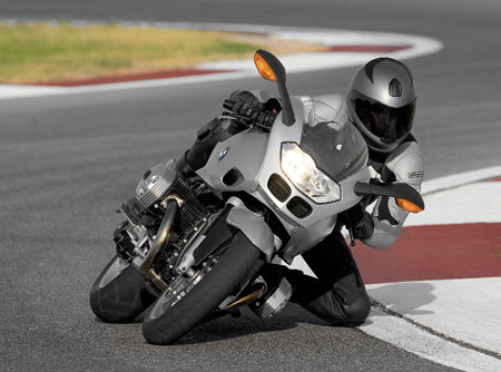 Выражаясь не столь вычурно, при определённой ломке стереотипов (мол, не место столь большому и тяжёлому мотоциклу, да ещё с такой базой, на треке) R-ку вполне можно вваливать по самые упоры водительских подножек, а вызывавшие у меня поначалу некоторые опасения торчащие в стороны цилиндры ни разу не коснулись асфальта, несмотря на все мои старания. На фоне предшественника предельно допустимый угол наклона вырос на 2% и теперь составляет внушительные 52°. Думаю, что с такими показателями, во всяком случае, на стоковой резине, коснуться цилиндрами асфальта можно будет только один раз…Баланс