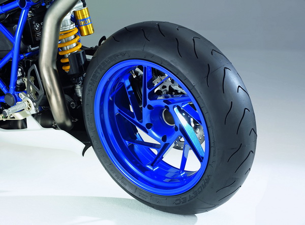 Так, колеса здесь – специально разработанные, куда легче тех, что на «обычных» баварцах. А от рамы (за основу ее взяли узел от R1200 S) отпилили все, что можно и чего нельзя. Из второго – задний бугель. Он здесь не нужен: с несущими функциями вполне справляется карбоновый «хвост». Из того же материала и весь остальной «фэйринг» (ну, за исключением слайдеров на моторе), включая клапанные крышки и заднее крыло, на которое, по нынешней моде, навьючили не только стоп-сигнал, но и «поворотники».