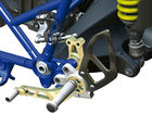 Это привело к значительному уменьшению вылета – со 127 до 95 мм. На НР2 использована необычная передняя подвеска Telelever в сочетании со вполне традиционной телескопической 45-миллиметровой вилкой-перевертышем Marzocchi с черным титаново-нитридным покрытием. Задняя подвеска – вершина эволюции Paralevel в сочетании с демпфером Ohlins, заменившим эндуровский пневматический амортизатор. Ход колеса – 160 мм, как переднего, так и заднего. Оба колеса легко выдерживают дополнительный вес, сжатие и нагрузку при прыжках. Мотоцикл укомплектован тормозами Brembos. Передние – в форме двойных 320-миллиметровых роторов, укрепленных на стандартных четырехпоршневых суппортах Gold-Series. Задние – одинарный 265-миллиметровый ротор на двухпоршневом суппорте.