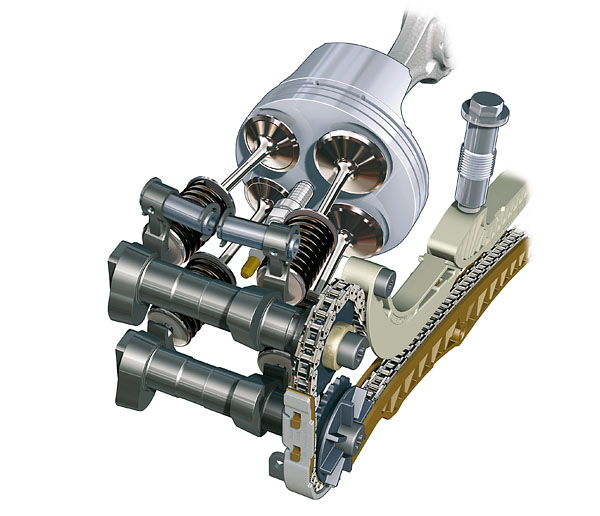 Для того, чтобы двигателю лучше дышалось, диаметр тарелок клапанов был увеличен с 36 до 39 мм (на впуске) и с 31 до 33 мм (на выпуске).