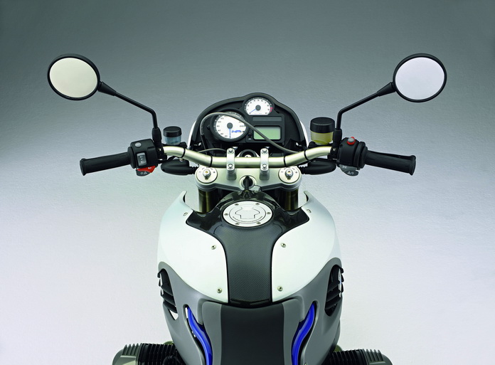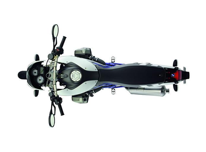 Мотор позаимствован у новейшего «туриста» R1200 RT, но воздухоочиститель и системы выпуска оригинальные. КПП стандартная для «оппозитов» нового поколения, и её картер в блоке с картером двигателя включены в силовую структуру. Тормоза тоже отнюдь не традиционны для BMW, которая, как правило, устанавливает мощные системы с АБС и электроусилителем. Здесь всё по-спартански просто: спереди и сзади по одному диску и никаких АБС даже в качестве опции. Бак небольшой – 13 литров. Для лучшего контроля за запасом топлива его заднюю стенку сделали полупрозрачной. «Оперение» выполнено из крашенного полипропилена, практически не боящегося царапин. Скудные украшения брутального образа – простая круглая фара, обрамлённая трубами мини-кенгурина, и скудненькая «приборка» от K1200 S. Всё это лишний раз подчёркивает спортивную направленность модели – для очень активного оффроуда и для очень продвинутых юзеров.