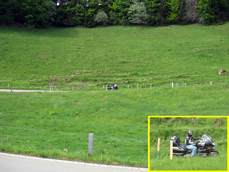 Проехав пару километров по склону горы мы обнаружили сухой асфальт. Такое возможно наверное не только в Швейцарии, но и в любой другой горной местности - с одной стороны перевала светит солнце, с другой идет дождь.