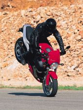 вертикальный вылет вилки в 21 градус и малый вес 179кг превращают этот мотоцикл