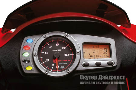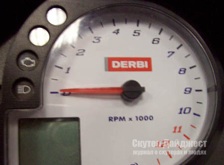 И расстарались, если не сказать – оттопырились! Договорились с подвесочниками из итальянской Sebac, чтоб сваяли им вилку с невиданной для обычных (не «макси») скутеров толщиной перьев 38 мм. И с радиальным креплением тормозной скобы, таким же (как и сами скобы), что и на спортбайках Derbi. Тоже впервые на столь «бюджетном» транспортном средстве. Впрочем, бюджет решили-таки малость минимизировать – за счет все той же унификации со спортбайками Derbi. Поскольку и новое поколение этих аппаратов (на сей раз не только 50-, но и 125-кубовых) не обещало переплюнуть в многотиражности Ford T, решили унифицировать с ними (помимо тормозов) переднюю и заднюю оптику, некоторые детали «обвеса», а также приборные доски. (Последние, правда, частично: огромную круглую шкалу здесь занимает не тахометр, а спидометр). Ко всему прочему это облегчило работу не только технологам и дизайнерам, но и маркетологам: какой же будущий менеджер среднего звена (а именно для учащейся молоди в первую очередь предназначены оба аппарата) не прослезится от умиления, увидев в салоне Derbi единый корпоративный стиль не только стен дилершипа, но и представленных в нем аппаратов? Смех смехом, но раньше на подобное рискнула пойти только Aprilia, и то, по-моему, не вполне осознанно…