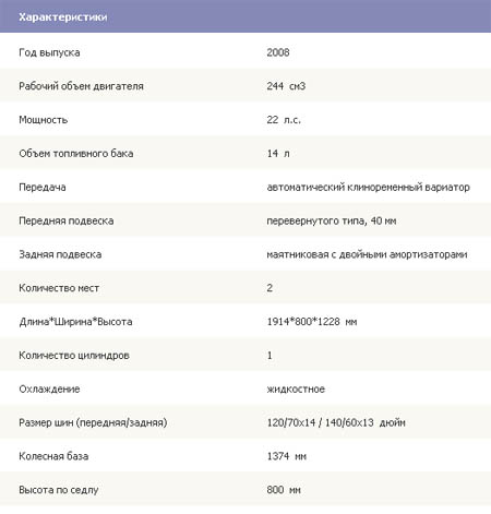 Невероятно, но факт: самый навороченный и авангардный скутер современности стоит дешевле любого другого 250-кубового аппарата! И это притом, что экономия здесь видна только в отсутствии штатного иммобилайзера и боковой подставки.