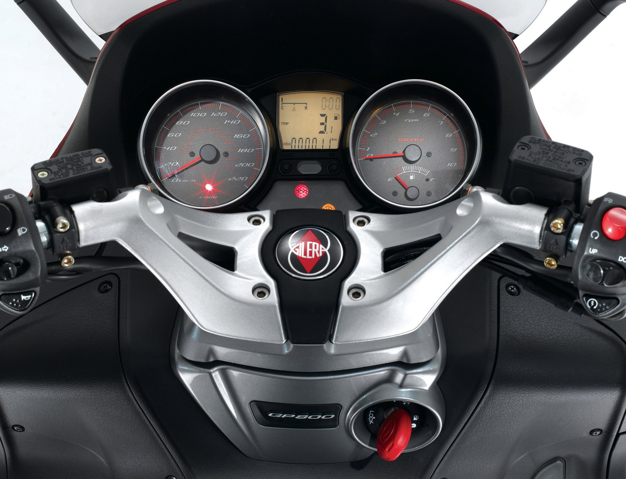 Gilera 800 в продаже с лета 2007 года. Это хоть и не самый большой, но самый мощный и большеобъемный скутер из всех, представленных на данный момент на рынке. Мощность мотора в 75 л.с. обеспечивает этому аппарату весом в 235 кг отличную динамику, сравнимую с мотоциклами с движками среднего объема, а заодно и максимальную скорость в 188 км/ч. Мотор также предлагает богатые возможности для экстремальной форсировки – судя по всему, 100 л.с. для него не предел.