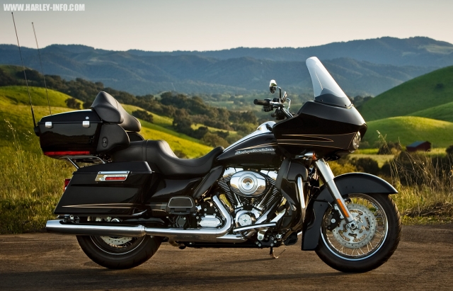 Harley-Davidson Road Glide Ultra является пожалуй самой интересной и навороченной новинкой модельного ряда 2011 года. Мотоцикл комплектуется двигателем Twin Cam 103, объемом 1,690 cm³, с максимальным крутящим моментом 138 Н/м при 3500 об/мин и воздушным охлаждением. Удобство байкера обеспечивают измененные руль, подножки и улучшенное сиденье, позволяющее комфортно путешествовать как одному, так и с пассажиром. Road Glide Ultra оснащается аудиосистемой Harmаn Kardon и четыремя акустическими колонками с возможностью подключить iPod, антиблокировочной системой тормозов и круиз-контролем.