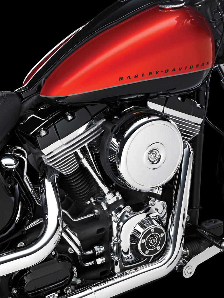Cмотрится байк агрессивно - хром уступил место чернению, крылья укорочены, низкая посадка, всего 660 мм от поверхности дороги, традиционные спицованные черные колеса с классической формулой 21 дюйм спереди, 16 - сзади. Также обращают на себя внимание особой формы бак (похожий в Harley использовали в 1936 году) и максимально узкий руль, узость которого ограничена лишь американским техническим регламентом. Двигатель - Big Twin 96 кубических дюйма, 6-ступенчатая коробка передач, привод по традиции ременной.