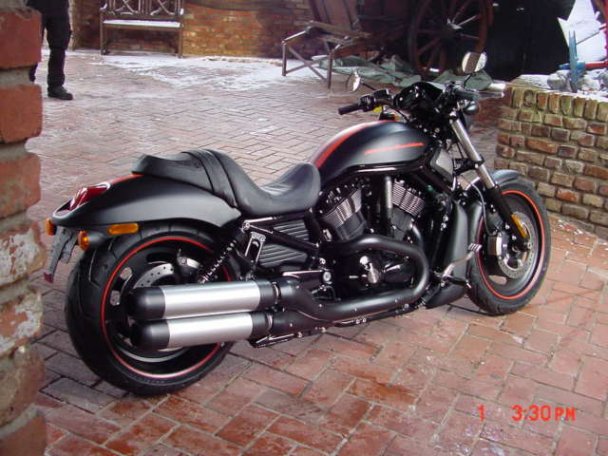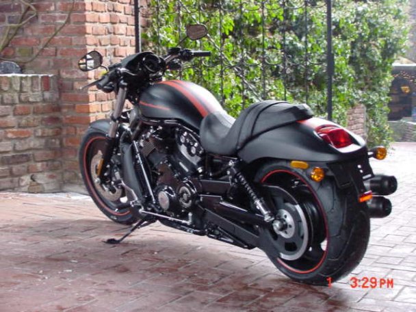Параметр Значение (Metric units) Длина 2,357 мм Высота (нагруженный) 650 мм Высота (ненагруженный) 678 мм Дорожный просвет (Clearance) 122 мм Сухой вес 290 кг Вес в движении 305 кг Угол наклона вилки 34 ° Колёсная база 1,702 мм Объём топливного бака 18.9 л Масляный резервуар 4.7 л Двигатель Revolution® Объём двигателя 1,250 cm³ Диаметр и ход поршня 105 мм x 72 мм Крутящий момент 117 Nm @ 6500 rpm Охлаждение двигателя жидкостное Расход топлива (город) 6.92 л на 100 км Расход топлива (шоссе) 5.6 л на 100 км Система подачи топлива Electronic Sequential Port Fuel Injection (ESPFI) Степень сжатия 11.5:1 Передаточное число (1) 11.752 Передаточное число (2) 7.898 Передаточное число (3) 6.322 Передаточное число (4) 5.459 Передаточное число (5) 4.899 Передние шины 120/70ZR-19 60W Задние шины 240/40R-18 79V Тормоза 4-piston front and rear Primary Drive Gear, 117/64 ratio Максимальные углы наклона мотоцикла 32 / 32 ° Electrical - Instruments Electronic speedometer with odometer, time-of-day clock on odometer, dual tripmeter, fuel gauge with low fuel warning light and countdown feature, low oil pressure indicator light, engine diagnostics readout, LED indicator lights, tachometer Electrical - Indicator Lamps High beam, neutral, low oil pressure, turn signals, engine diagnostics, security system (optional), coolant temperature, low fuel warnings Выхлопная система Satin chrome, dual side exhaust system