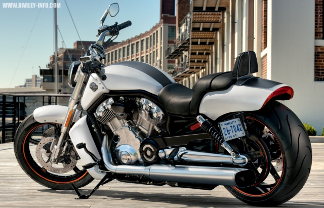 Параметр Значение (Metric units) Длина 2,398 мм Высота (нагруженный) 640 мм Высота (ненагруженный) 668 мм Дорожный просвет (Clearance) 107 мм Сухой вес 292 кг Вес в движении 307 кг Угол наклона вилки 34 ° Колёсная база 1,707 мм Объём топливного бака 18.9 л Масляный резервуар 4.7 л Двигатель Revolution® Объём двигателя 1,250 cm³ Диаметр и ход поршня 105 мм x 72 мм Крутящий момент 115 Nm @ 7000 rpm Охлаждение двигателя жидкостное Расход топлива (город) 6.92 л на 100 км Расход топлива (шоссе) 5.6 л на 100 км Система подачи топлива Electronic Sequential Port Fuel Injection (ESPFI) Степень сжатия 11.5:1 Передаточное число (1) 11.752 Передаточное число (2) 7.898 Передаточное число (3) 6.322 Передаточное число (4) 5.459 Передаточное число (5) 4.899 Передние шины 120/70ZR-19 60W Задние шины 240/40R-18 79V Тормоза 4-piston front and rear Primary Drive Gear, 117/64 ratio Максимальные углы наклона мотоцикла 32 / 32 ° Electrical - Instruments Electronic speedometer with odometer, time-of-day clock on odometer, dual tripmeter, fuel gauge with low fuel warning light and countdown feature, low oil pressure indicator light, engine diagnostics readout, LED indicator lights, tachometer Electrical - Indicator Lamps High beam, neutral, low oil pressure, turn signals, engine diagnostics, security system (optional), coolant temperature, low fuel warnings Выхлопная система Straight-shot exhaust with brushed finish dual mufflers; black end caps and heat shield