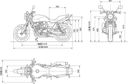 - габариты: 2,040 м х 0,725 м х 1,070 м (CB400 SUPER FOUR);