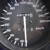 спортбайках. К положительной особенности мотоцикла хотелось бы добавить относительно большой клиренс, который без особых проблем позволяет переехать не только «лежачего полицейского», но и вскарабкаться на бордюр без чирканья «клювом» обтекателя. Правда, с пассажиром иногда достается центральной подножке. Ну и, конечно, в дальней поездке можно быть спокойным, что на открытом загородном шоссе аппарат не сдует боковым ветром. Даже не знаю, какой части мотоцикла за это сказать спасибо – то ли аэродинамически правильному обтекателю, то ли внушительной базе и большому весу. Кстати, при всем этом отмечу экономичность аппарата. Если в дальнобое держать скорость до 200 км/ч, то выходит не более семи литров на «сотню». Так, на хорошей ноте, без единой поломки, под впечатлением решил завершить прошлый сезон. Но не тут-то было. В результате банального падения на гравии «снес» правый поворотник и довольно ощутимо поцарапал правый борт с глушителем. Ремонт пластика с покраской обошелся в $ 330, плюс $ 80 за поворотник. Но страшное ждало впереди. Простое падение привело к повреждению тормозной машинки, и сочащаяся «тормозуха» сделала свое коварное дело. В результате отвалились крепежи бокового спойлера в верхней носовой части, местами стала вздуваться краска. Ездить, конечно, можно, но самому неприятно. В итоге решил отложить эту проблему до зимы. Будет время, будет желание самому разобраться. Закончу тем, с чего начинал. Жизнь ведет нас по довольно извилистой дороге судьбы. Раньше даже предположить не мог, что стану поклонником спорт-туристов. А сейчас даже и не планирую менять CBR1000F, по крайней мере, пару лет. Странно, не правда ли? Ведь вроде и возраст у машины не малый, и дизайн не современный. Все так, но главное, что мотоцикл убедил меня в том, что существуют машины стремительные, мощные и при этом управляемые и комфортные. Только сейчас на новом витке эволюции многие компании стали возвращаться к такой концепции мотоцикла. А Honda еще в 80-х годах прошлого столетия разработала эту «машину времени». Поэтому если суетность и безбашенность вам не свойственны, присоединяйтесь – получите наслаждение от CBR1000F.