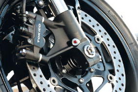 Передние тормоза с гидравлическим приводом. Два плавающих тормозных диска