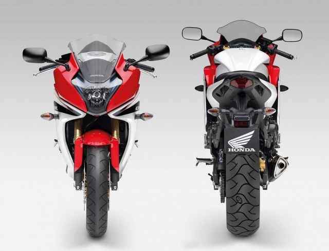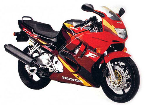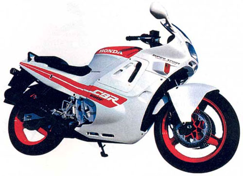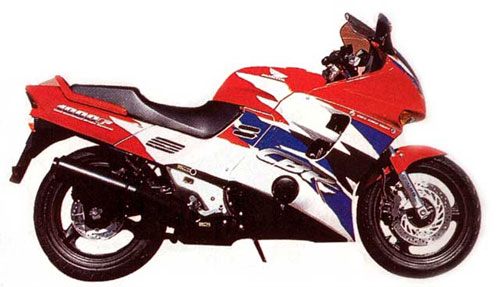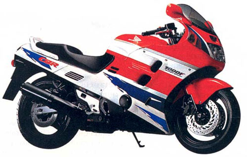 постройнела и похорошела. 1993 год: перемены в подвеске "шестисотки". Новая передняя вилка с регулировкой гидравлического сопротивления отбою, задний амортизатор с регулировкой гидравлического сопротивления сжатию. Значительно модернизирован CBR1000F: новая форма обтекателя, узкое переднее крыло, карбюраторы Keihin VP, комбинированная тормозная система (когда при нажатии на один рычаг или педаль тормозят оба колеса) с 3-поршневыми скобами. Масса мотоцикла - 235 кг, база - 1500 мм.