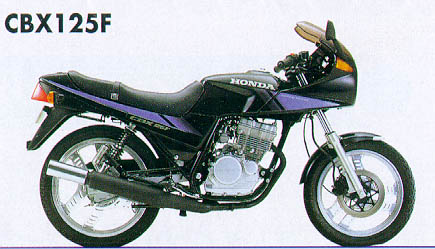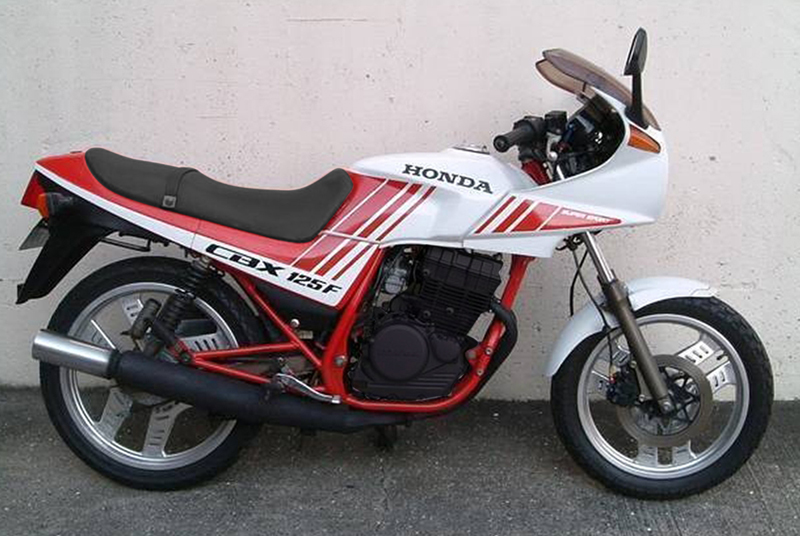 Make Model Honda CBX 125F Custom Year 1983 Engine Air cooled, four stroke, single cylinder, DOHC, 4 valve per cylinder Capacity 124 Bore x Stroke 58 x 47 mm Compression Ratio 11.0:1 Induction PF35 Ignition/Starting CDI / electric Max Power 17 hp @ 11500 rpm Max Torque 1.1 kg-m @ 8500 rpm Transmission /Drive 5 Speed / chain Frame Semi-double cradle Front Suspension Telescopic forks Rear Suspension Swinging arm Front Brakes Single disc Rear Brakes Drum Front Tyre 90/90 18 Rear Tyre 110/90- 16 Seat Height 770 mm Dry-Weight 114 kg Fuel Capacity 10 Litres