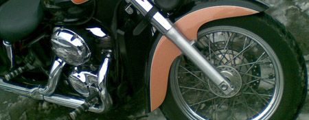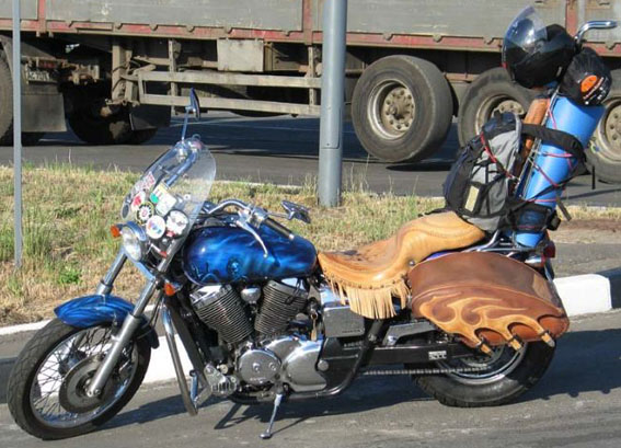 Yamaha: сидение, вынос ног и посадку уже можно сравнивать. Мотоцикл удобнее по посадке, и это заметно. Ноги на месте, и сидеть приятнее. Что на литре, что на ''четырехсотке'', разницы не вижу. Руль, что и на Хонде, то же удобство, спидометр на баке, зеркала на месте. Набор до 40км/ч не удивляет. Цвет у них одинаковый, но положение ног на подножках говорит о том, что ты на другом мотоцикле. Еще привод на колесо карданом. Наверное, это все таки плюс, для лентяев — это очень веский аргумент. У нас не так жарко и нет затяжных подъемов, чтобы беспокоится за воздушное охлаждение мотора, да и не слышал я о его перегревах. Так что отсутствие радиатора — еще один плюс для лентяев, не требуется замена антифриза. Как водится, без ложечки дегтя не обошлось и здесь, хотя это мелочи жизни. Так, двигатель, произошедший от добротной и проверенной временем и японскими тайфунами V-шки XV 400/535, в отличие от последней, надежностью не отличается. Виной всему — проблемы с электрикой, в частности электростартером и аккумулятором. Что же до трансмиссии, то конкурентам остается нервно курить: сравнимую по надежности еще нужно поискать. Рама не по-чопперному жесткая, однако это достоинство частично нивелируется большим наклоном вилки, что обуславливает некую валкость в поворотах. И еще о подвесках: зачастую попадаются экземпляры с текущими вилками. Что же до задней, то она жестковата, а иные экземпляры приходят из Японии и вовсе без заднего амортизатора, такой себе тюнинговый ''хардтейл'', так что следует внимательнее осматривать выбираемый аппарат.