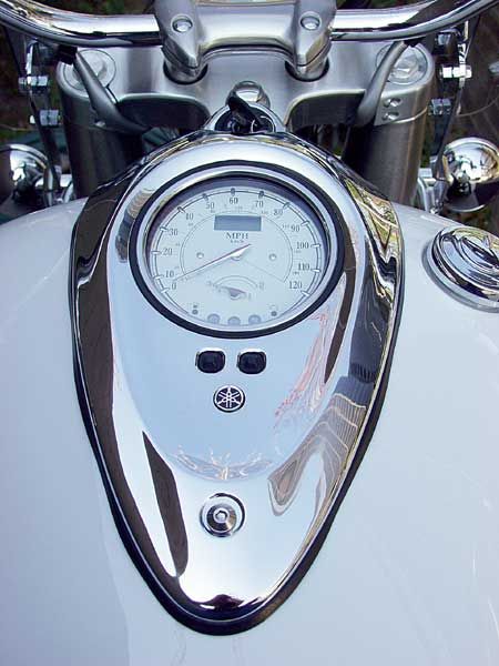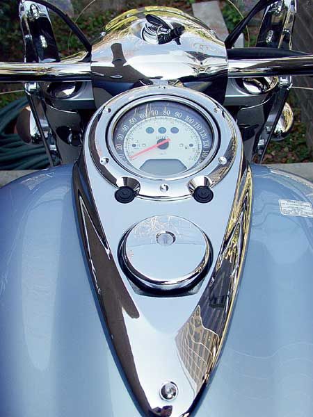 Создайте и они будут жаловаться ![]() Совет пассажирам: Держитесь! Ни то будете высоко подпрыгивать на каждой кочке или вообще слетите. К счастью, сменное заднее сиденье достаточно мягкое и длинное. Подножки, которые при необходимости легко откручиваются, расположены дальше от переднего колеса, чем нам бы хотелось. Подножки крепятся за удобной стойкой рамы, и при их снятии место крепления становится невидимым - преимущества прогрессивного стиля. Да, я сказал, что корпус индикатора был наподобие хромированного, что является одним из самых непростительных недостатков стилизации байка. Верите вы или нет, но красивая передняя фара также является фальшиво хромированной. Она похожа на металлическую, но постучите по ней и вы поймете, что она пластиковая. Мы не можем поверить, что Honda пыталась сэкономить вес на этом уже готовом, монолитном мотоцикле, так что мы полагаем, что выбор пал на срез одного из нескольких углов, чтобы удержать MSRP (рекомендуемую производителем (розничную) цену) в разумных пределах. Хуже пока то, что этот первый выпуск байков имел что-то вроде родинки - частицы блестящей хромированной краски на черном внутреннем крае корпуса индикатора. Есть и другие стилевые недостатки на этом лидирующем круизере, на которые вы не обратите внимание, пока не перестанете пристально смотреть на его будоражущий кровь двигатель. Крышка воздухоочистителя и корпуса фар пластиковые. Прокладка проводов также могла бы быть выполнена более изящно, со вкусом. Провода поворотников, например, безобразно извиваются вдоль задней части стоек вилки, а кабеля дросселя байка обвивают руль, напоминая мотоциклы 1960-х годов. Были использованы даже пластиковые кабеля связи для соединения тормозных магистралей и проводки от ручных элементов управления. Шов на нижней части бензобака, выступающая кромка, которая проходит по нижнему краю, кажется немного грубой и дикой. И прекрасные хромированные выхлопные трубы являются фасадом для необработанного корпуса системы. Когда работники журнала Motorcycle Cruiser общались с читателями в Дейтона Бич, Дейтона, они безжалостно критиковали эти недостатки стилизации и отметили несколько новых. Несколько людей давали разъяснения по низкокачественным рефлекторам и громоздким резервуарам тормозной жидкости на нескольких языках - на английском и японском. Также, боковые крышки не следуют за линией рамы, что по нашему мнению, скорее, оплошность чем достоинство. ![]() Нам нравится руль со встроенным спидометром/LED-одометром. Пластиковый корпус индикатора на бензобаке явно не подходит байку. Невзирая ни на что, мы все же считаем и говорим, что байк, в целом, очень красив, особенно без пассажирских принадлежностей, которые, кстати, легко снимаются. Внешний вид кокпита также очень привлекательный, с длинным, широким бензобаком, на котором размещен небольшой, но удобочитаемый спидометр/LED-одометр с черной лицевой поверхностью. Передняя фара красиво смотрится со всех ракурсов, и все соглашаются, что алюминиевые литые диски идеально подходят байку. На приборной панели бензобака расположены обычные индикаторы, а также LED-одометр/трипметр. Тем не менее, мы откровенно сбиты с толку тем фактом, что светодиодный (LED) дисплей ограничивается только одним счетчиком метров. Было бы намного приятней иметь перед глазами еще и счётчик секунд,