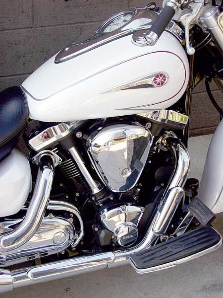 Мы не хотели одну случайную встречу с этим байком называть тестом, поэтому обязаны были все это проделать (о чем речь пойдет ниже), чтобы иметь реальное представление об этом самом последнем на то время сердцееде рынка круизеров. Нам предстояло выяснить, все ли точки над "і" в нем расставлены. Забегая вперед скажу, что даже после 3500 миль, менее чем за две недели, в седле этого байка, Хонда VTX хранила еще несколько секретов. Участие самого большого V-твина на планете в самом большом в мире гоночном состязании круизеров - это была наиболее объективная его проверка. Байкерская неделя в Дейтона (город-курорт в США, штат Флорида, знаменит трассой для гонок) является настоящим банкетом возможностей V-твина, испытательным полигоном, разве что со стоячими местами. Я должен был оставить Калифорнию на недавно собранном байке (из Мерисвиль, штат Огайо) только на три с половиной дня, которые мне выделили для путешествия во Флориду. Мы намотали несколько миль в городе и за городом на борту другого тестового байка VTX и испробовали еще один в Дейтона. Три тестируемых образца, любые условия езды (какие только можно представить). Здесь мы будем говорить о том, на что вы можете рассчитывать, если вы отдали 12.5 тысяч долларов за байк 2002 Honda VTX 1800. Большой пруд, большая рыба ![]() Двигатель VTX похож на скульптурное произведение, с явно круизерским характером. Его огромная 4,5-литровая воздушная камера расположена между огромными цилиндрами, а специально спроектированная система сухого картера позволила установить двигатель низко в раме.