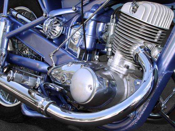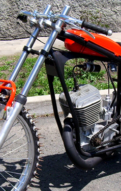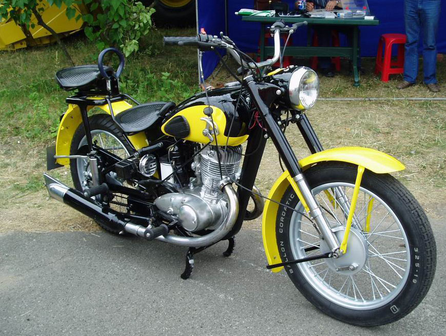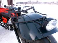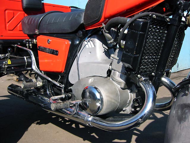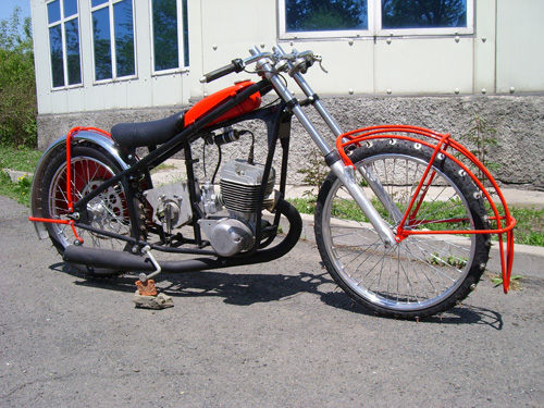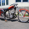 - На фотографии двигатель от ЧЗ или ЯВЫ, вилка от ИЖа (или от ЧЗ), все остальное самоделка - из всегоподряд. (Black_Voron)