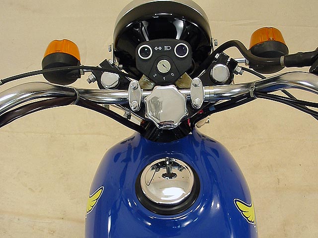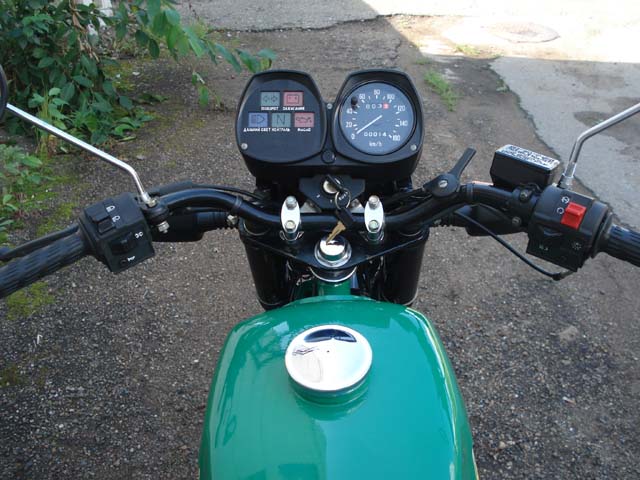 Удобное расположение переключателей, рычагов управления на руле и наличие контрольных ламп и спидометра на приборном щитке улучшают эксплутационные качества мотоцикла