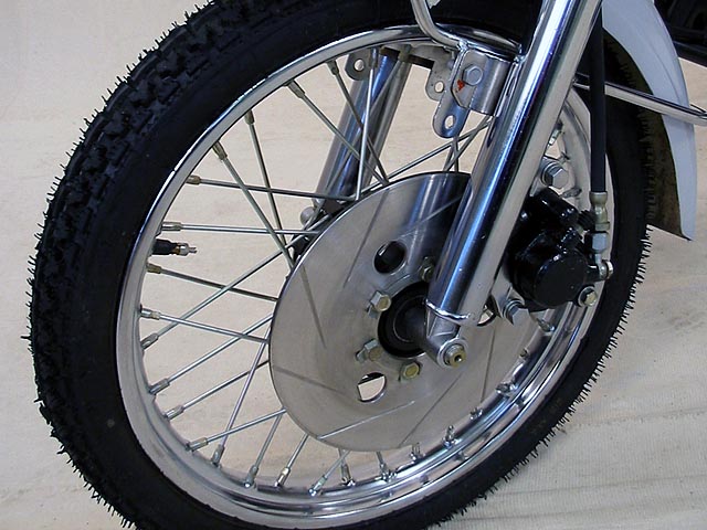 Тормоз переднего колеса 2-х кулачковый барабаного типа с механическим приводом или дисковый с гидроприводом гарантирует базопасность движения