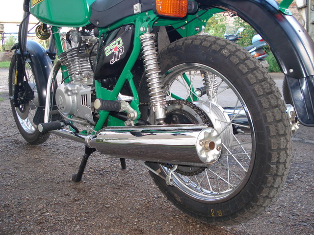 Двигатель: 2-x тактныйРабочий объём: 340 см3Мощность двигателя: 32 л. с., 6700 об./мин.Переднее колесо: 2.75х23Заднее колесо: 3.0х21