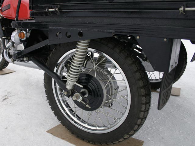 Подвеска заднего колеса независимая, длиннорычажная, пружина с гидравлическими амортизаторами с регулированием усилия поджатия пружин обеспечивает комфорт при езде