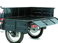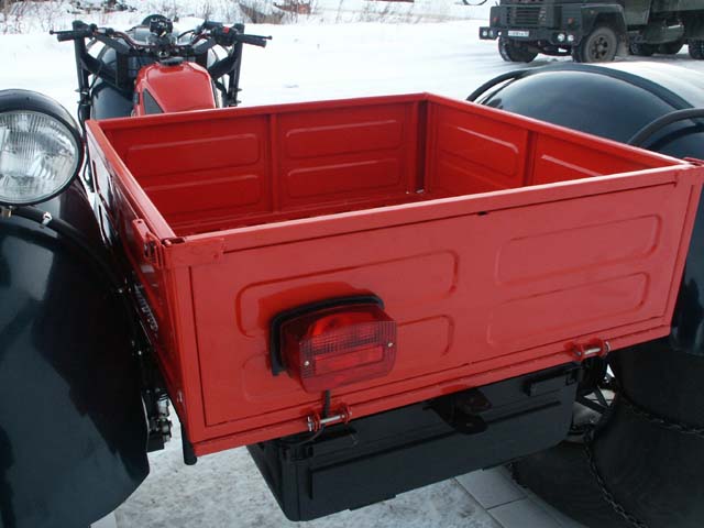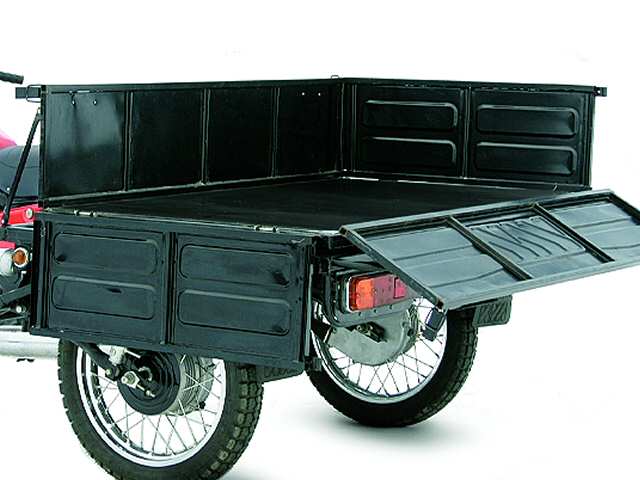 Мотоцикл с грузовым модулем предназначен для перевозки одного пассажира и грузов различного вида, выполнен на базе мотоцикла "ИЖ Юпитер - 5" с двигателем жидкостного охлаждения. Грузовой модуль представляет собой двухколесный прицеп, жестко присоединяемый к мотоциклу сзади и образующий с ним трехколесное транспортное средство. Колеса, подвески, тормозные механизмы модуля унифицированы с аналогичными узлами мотоцикла.