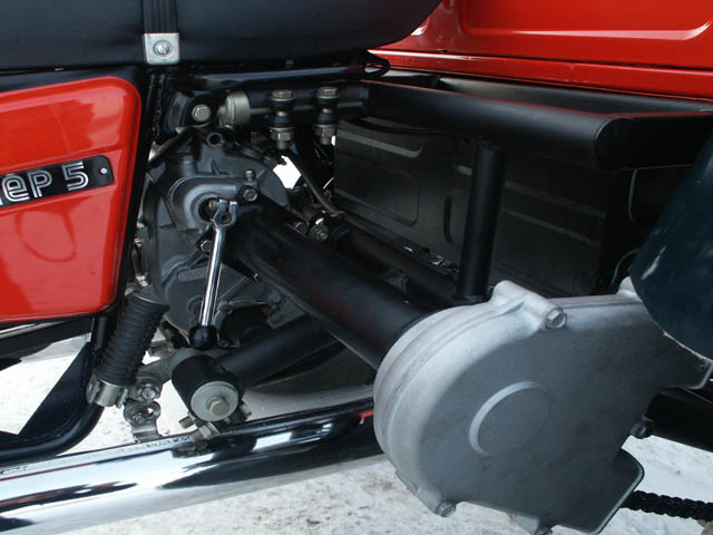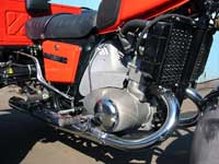 В это же время был проведен полный кап. ремонт двигателя ПС-350 (замена поршня, колец, расточка цилиндра, замена всех подшипников и сальников, шлифовка впускных\выпускных окон, поршня, камеры сгорания). Из токарных работ - расширительные бачки задних амортизаторов, ось заднего колеса, переходная план-шайба под восходовский генератор, ролик нижней ветви цепи (капролон) + были "развернуты" ПСовые траверсы под перья ЧЗ .