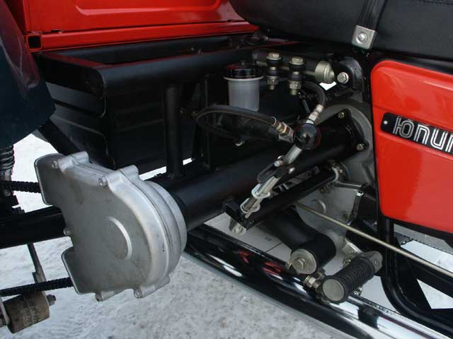 В трансмиссию мотовездехода входит раздаточная коробка с понижающей передачей и передачей заднего хода, дифференциал и механизм блокировки дифференциала.