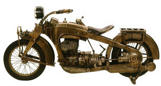 В этом мотоцикле вместо колесной подставки впервые был