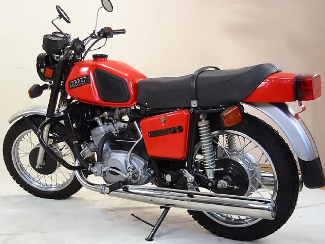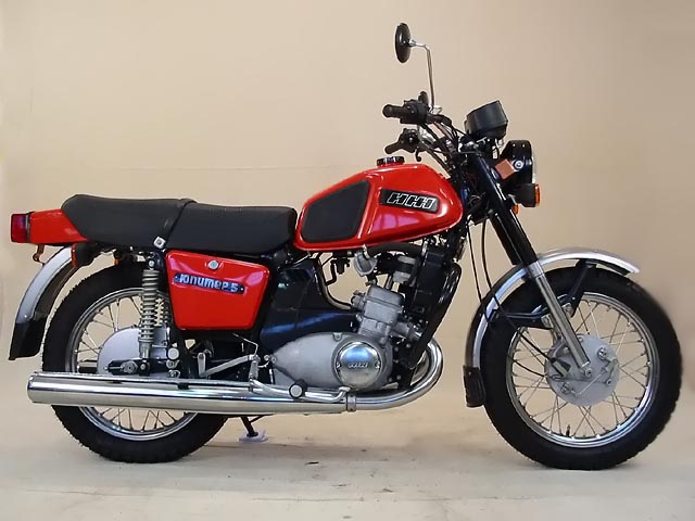 Год: 1975 Категория: Классический Тип двигателя: Двойной Максимальная мощность: 25 Система охлаждения: Воздушная Коробка передач: 4-х ступенчатая Максимальная скорость: 120 Емкость бака: 18.00 Топливная система: Port control Объем двигателя: 347 Длина хода поршня: 2 Мощность: 25 Компрессия: 8.5:1 Диаметр цилиндра - ход поршня: 61.8 x 58.0 Передача: цепь Снаряженный вес: 171 Размер передних шин: 3.50-18 Размер задних шин: 3.50-18