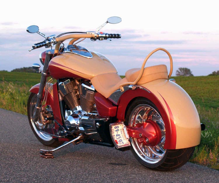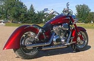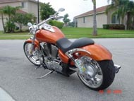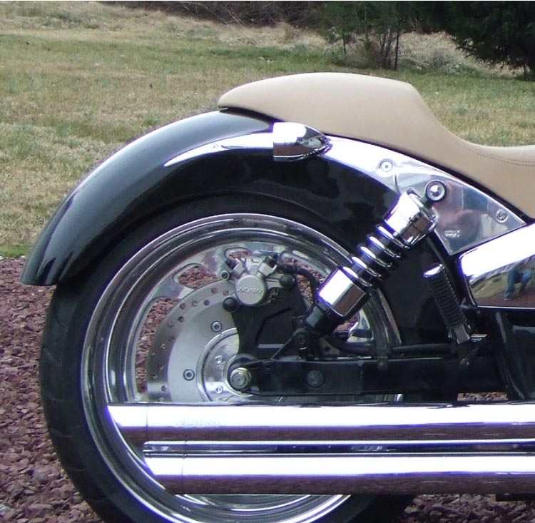 Комплект для Honda VTX 1800C под колесо 240мм. В комплект входит: укороченное крыло, кронштейны крыла, маятник, сидение 1.5 (6 см ниже штатного при установке укороченного амортизатора Progressive Suspension, возможны опции по расцветке). Все элементы можно заказать и по отдельности.