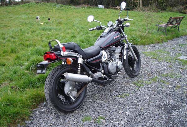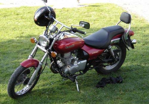 Зад: 130/90-15 Рейк, Трейл 34 градуса / 122 мм Колесная база 1470 мм Высота по седлу 681 мм Вес 128 кг (сухой) Емкость бака 13 л Привод Цепь Карбюраторы 28мм Mikuni Система газораспределения SOHC, распредвал в головке блока, 2