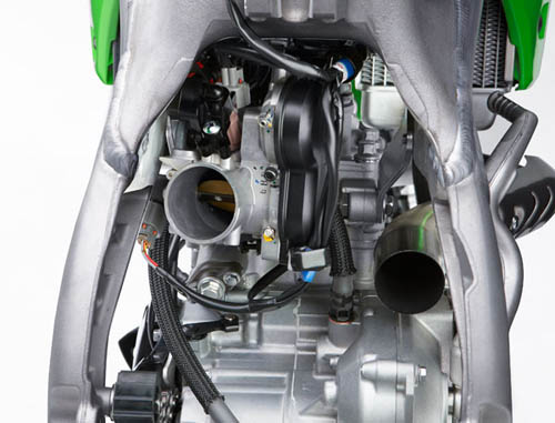 рядом с воздушной камерой. Двойной впрыск KX250F отличается от такового