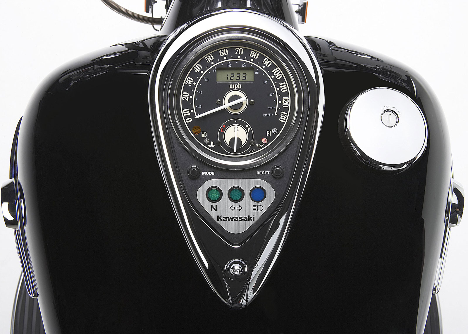 стареющею стилизацию, которая послужила отправной точкой для создания этого особого байка-кастома. Обширная линейка аксессуаров Kawasaki доступна байкерам для создания уникального в своем роде мотоцикла, который не только будет отличаться своими ездовыми характеристиками, но будет также служить своего рода росписью, отличительным знаком его владельца.