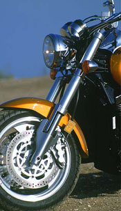 Когда открываешь или закрываешь заслонку, кардан реагирует не сразу, что замедляет ускорение. Это очень напоминает работу системы главной передачи более ранних мотоциклов БМВ. Впрочем, такого лязга и шума, как у БМВ, у Mean Streak нет. В городе это случается не так часто, как на длинных поворотах с непостоянным радиусом. За исключением этого недостатка, в трансмиссии Кавасаки изъянов нет. Безусловно, нам хотелось бы, чтобы мощность мотоцикла была выше, и это желание является вполне обоснованным, так как мы только что протестировали мотоцикл VTX Хонды и чуть ранее - V-Rod Харлея. Но, если рассматривать отношение мощности к весу, то все три мотоцикла очень схожи по своим характеристикам. Кроме того, лошадиные силы всегда можно купить, а вот усовершенствовать управляемость намного сложнее. Продолжая тему, следует отметить, что, когда тех же владельцев Вулканов спрашивали о том, каким бы они хотели видеть новый мотоцикл, они отвечали, что мощность для них, конечно, важна, но не менее важным фактором является управляемость. Как отметил представитель пресс-службы Кавасаки, Вулканологи хотели, чтобы у мотоцикла "были улучшены тормоза и шасси для уверенной остановки и хорошей управляемости". Итак, получили ли они то, что хотели? Давайте по порядку.