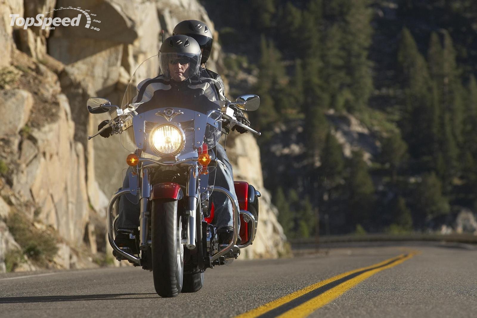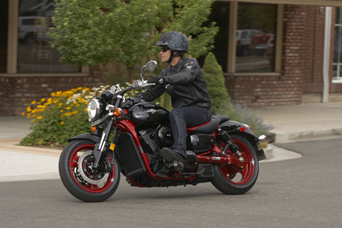 При прохождении длинных размашистых поворотов мотоцикл четко следует намеченной траектории. Все модернизации рамы и шасси в совокупности с амортизационной резиной создают уверенное ощущение стабильности машины. Более “зажатые”, узкие повороты требуют несколько поднапрячь мышцы, но руль обеспечивает хороший рычаг, и можно наслаждаться агрессивной и экстремальной поездкой на дорогах любого типа. Единственное, что будет огранивать фантазию - угол наклона машины, свойственный, впрочем, для любого круизера. Мощные тормоза усиливают чувство безопасности, и даже если затормозить экстренно, передняя часть не будет “нырять” слишком сильно, нарушая стабильность. А резкое ускорение при выходе из поворота не влечет за собой рывков и “эффекта хлопающей двери”. Эта модель является одним из наиболее простых в управлении круизеров.