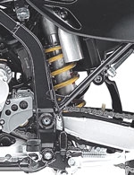 на кнопку электростартера мгновенно пробуждает к жизни силовую установку байка KLX400R. Двигатель отрегулирован для получения максимального крутящего момента на малых и средних оборотах, а также превосходного контроля над ручкой газа. Цилиндр, покрытый никелем, кремнием, фосфором, обеспечивает отличные свойства передачи тепла. Поршень внутри него - кованый, алюминиевый, масляноохлаждаемый. Улучшенные мощностные характеристики в диапазоне малых и средних оборотов способствуют энергичной реакции на ручку газа. Плавная и четкая реакция дросселя обеспечивается карбюратором Keihin FCR39, который "пьет" из 2.6-галлоного бензобака с большим запасом хода.