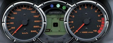 The Kawasaki KMX125's clocks are good (tacho, speedo and a fuel gauge) and