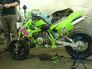 De-restricting the Kawasaki KMX125's motor involves removing a welded-in