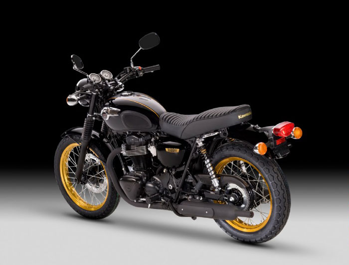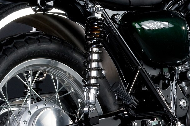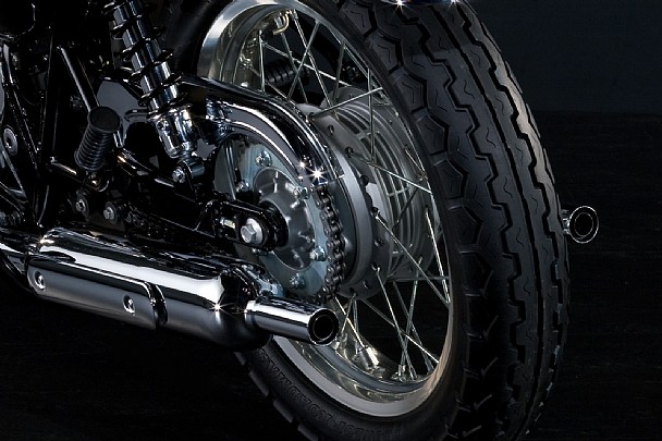 W800 лишился кик-стартера, зато сохранил допотопный задний барабанный