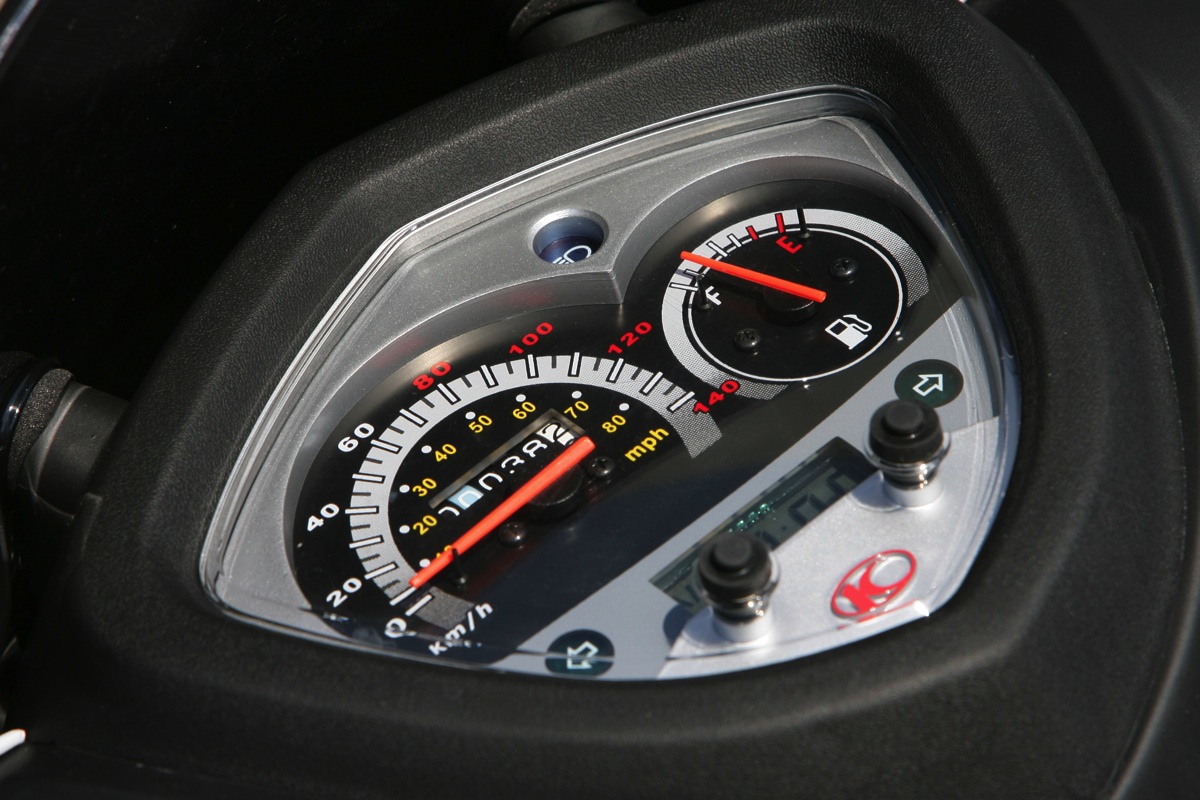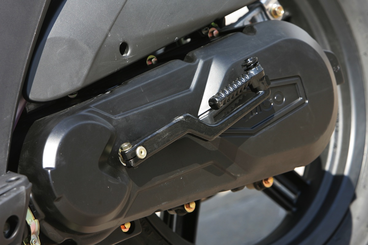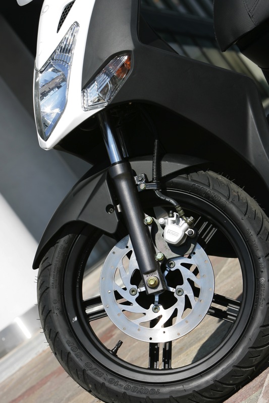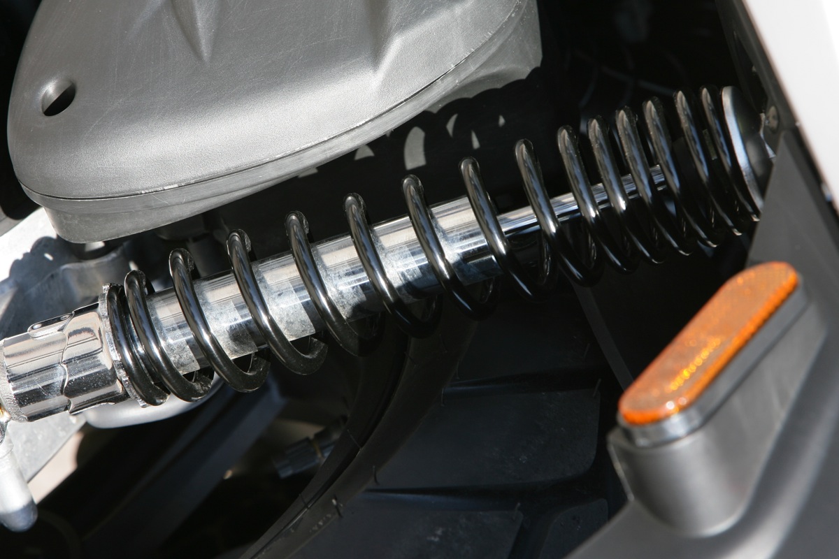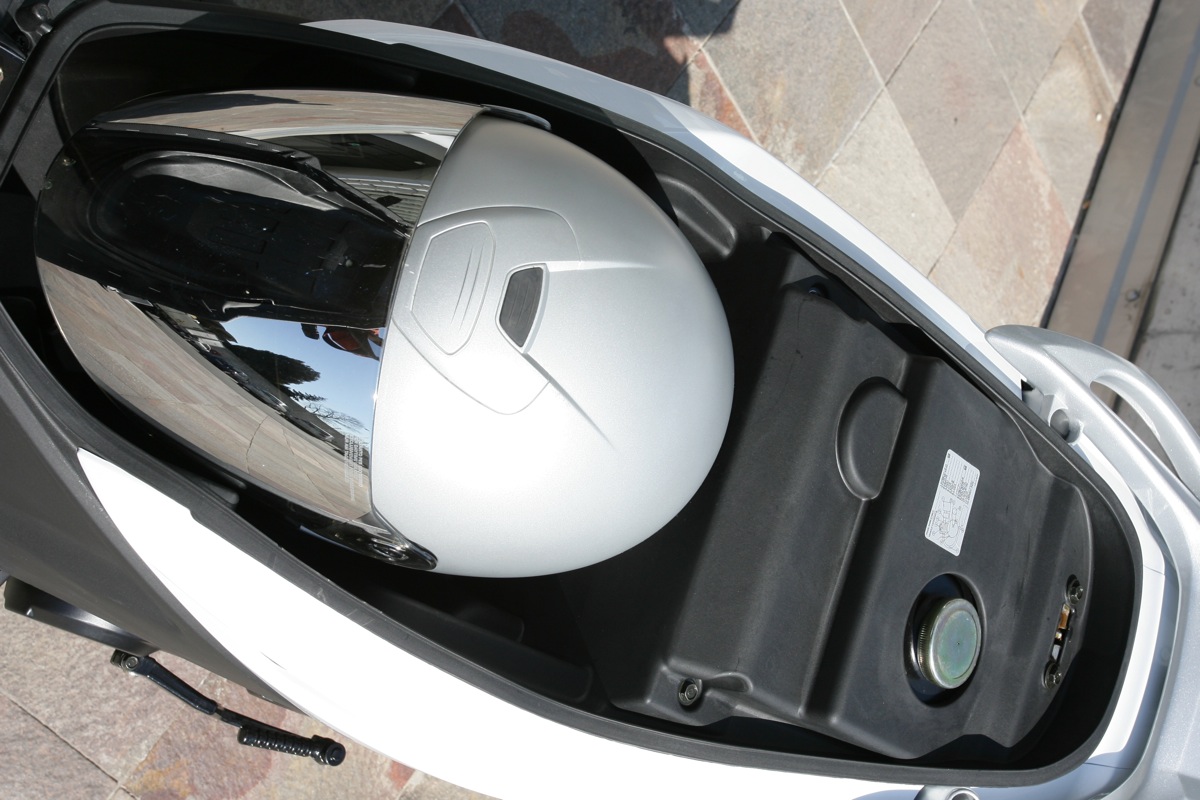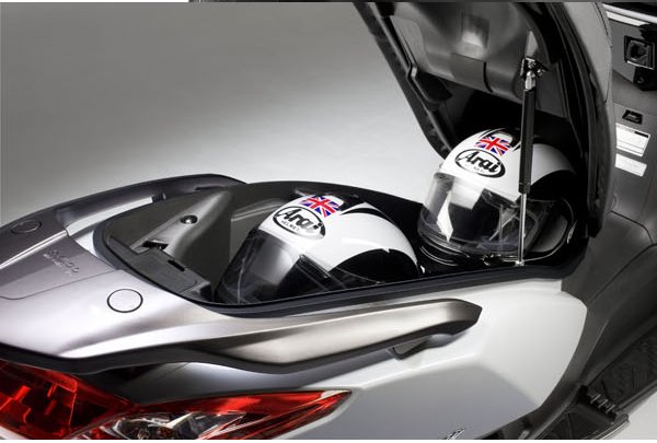 Переднее колесо имеет диаметр 14 дюймов, заднее 13. Задний амортизатор имеет пятипозиционную предварительную регулировку. Эффективные дисковые тормоза. Современная аналого-цифровая панель приборов. Эргономичные ручки. Дополнительные настройки, такие как например четырехпозиционная регулировка положения тормозной рукоятки (решение, привычное скорее для большеобъемных мотоциклов). Огромный багажник под сиденьем вмешает два шлема full face.