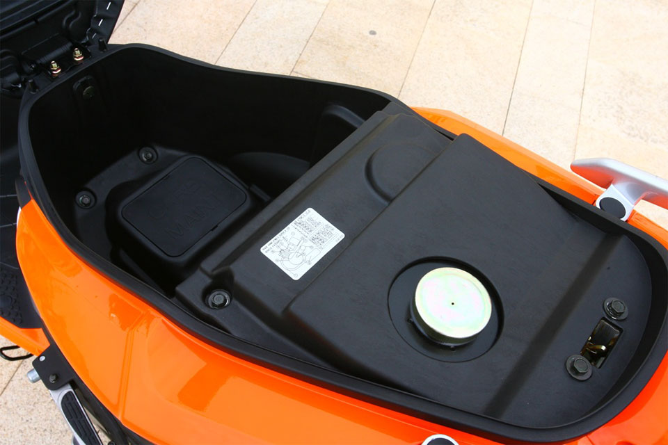 Аппарат имеет широкую и абсолютно плоскую платформу, которая обеспечивает максимальный комфорт и позволяет возить большое количество груза. Для удобства пассажира есть ручки. В багажном отсеке под сиденьем свободно помещается шлем.
